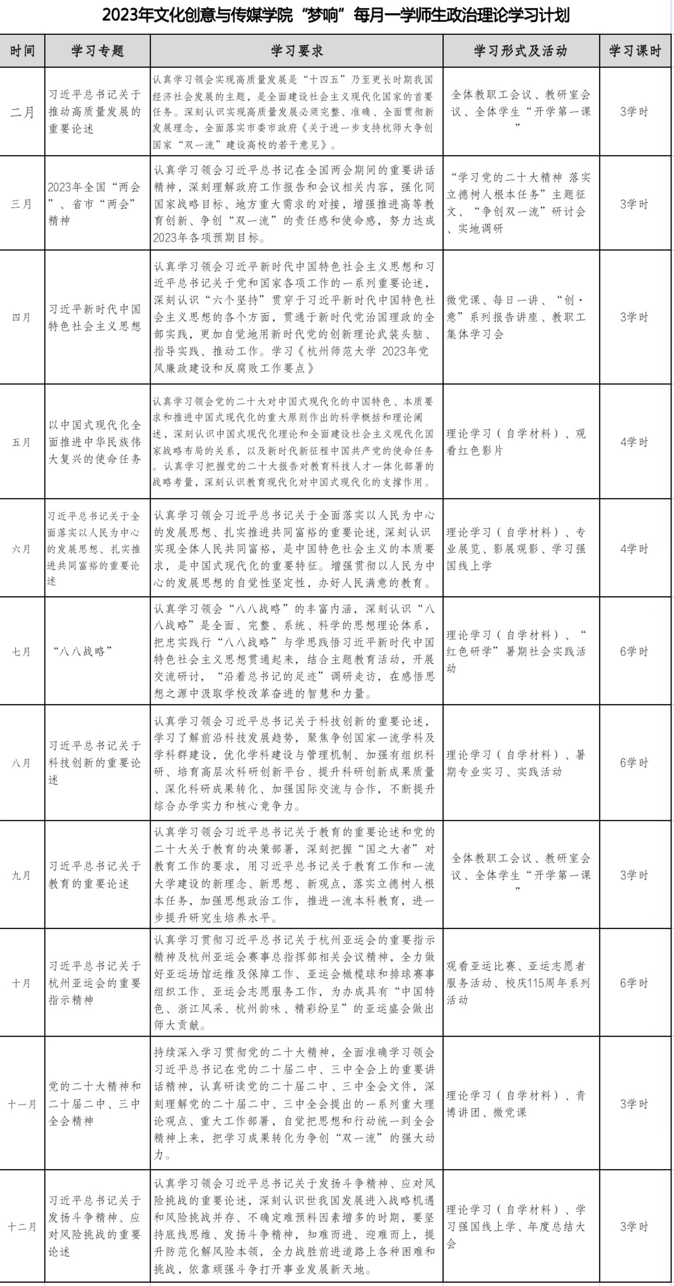 2023年69VJ “梦响”每月一学师生政治理论学习计划