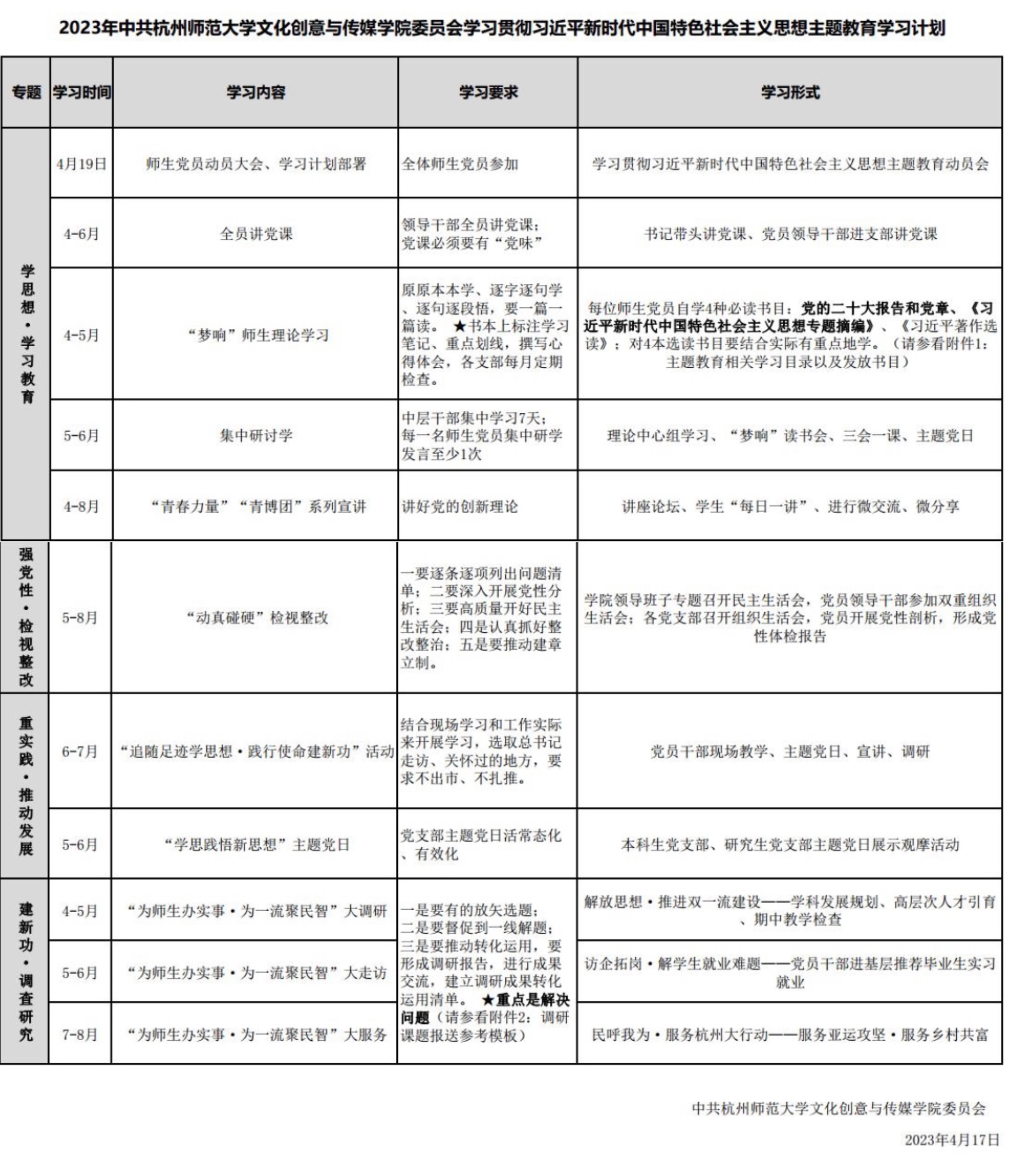 2023年中共69VJ 委员会学习贯彻习近平新时代中国特色社会主义思想主题教育学习计划