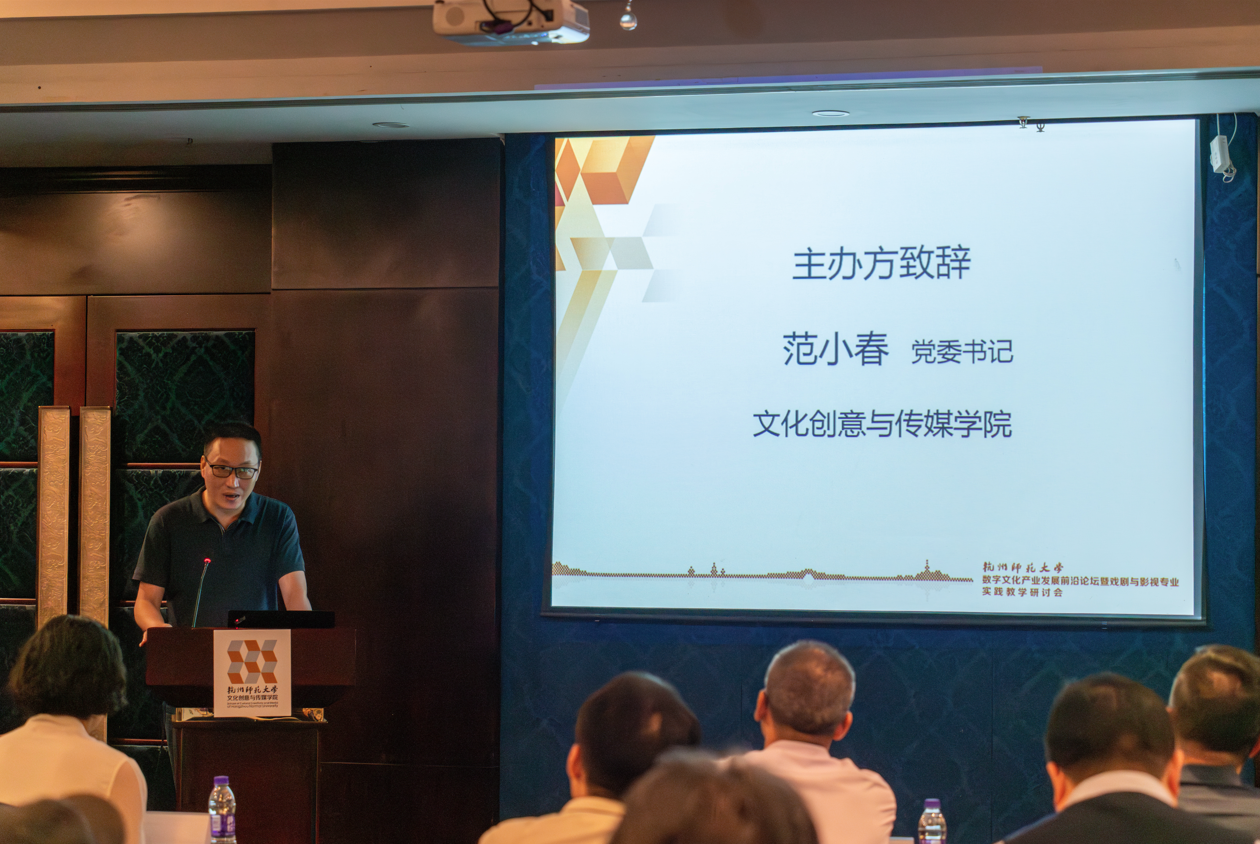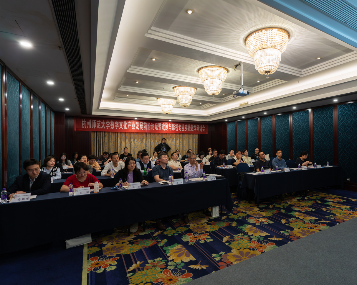 11月2日,69VJ 数字文化产业发展前沿论坛暨戏剧与影视专业实践教学研讨会在杭州百瑞运河大饭店隆重召开。此次会议围绕数字媒体艺术产业发展前沿问题与新媒体艺术人才培养新路径、新方法进行探讨交流。会议邀请了浙江省电视艺术家、杭州人民广播电台新闻综合频率、杭州市电影电视家协会、杭州市动漫游戏协会以及浙江国成文创集团、中南卡通、中文在线集团、蒸汽工场、候马传媒、硬脑创意科技、闻源文化、九野网络科技、兰桥影业、创美智成、天和云起(杭州)文化科技、鲲睿影视、阿优文化科技、玄机科技、全速网络、大千数码科技、浙江甲骨文超级码科技、壹馨文化等20余家单位的一线行业专家参与研讨。69VJ 全体党政领导班子、系主任及教师代表出席此次会议。
