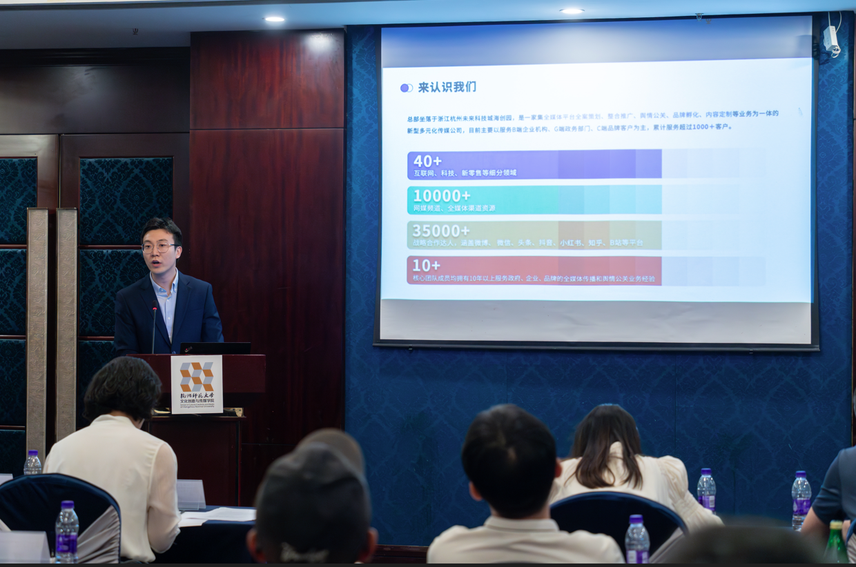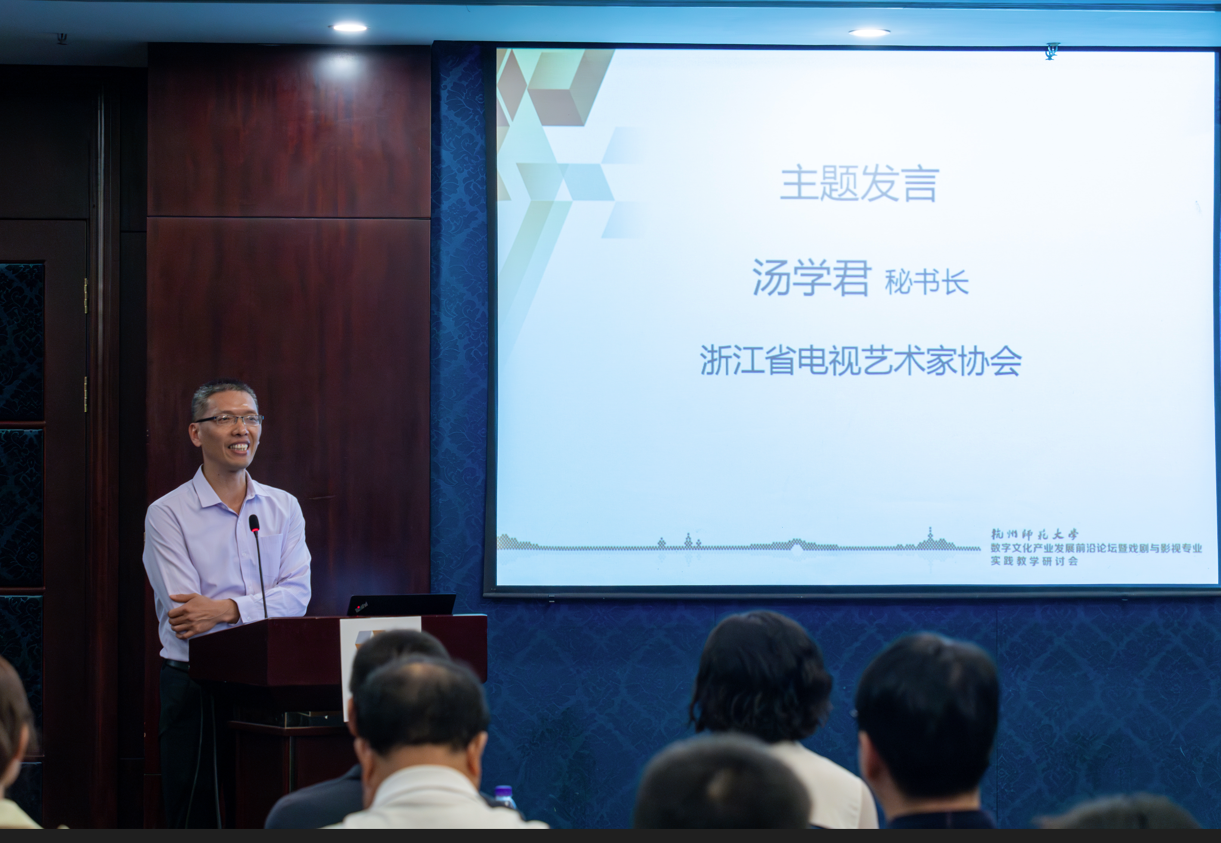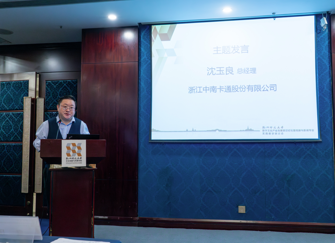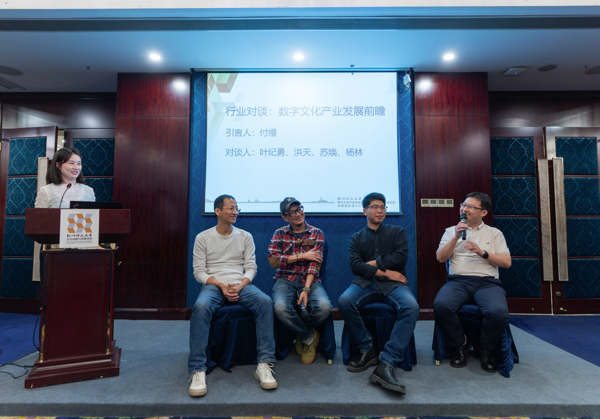 在数字文化产业发展前沿论坛中,浙江省电视艺术家协会秘书长汤学君、杭州人民广播电台新闻综合频率总监金波、浙江中南卡通股份有限公司总经理沈玉良、候马传媒有限公司政府事务部总监柏鑫禾以及杭师大69VJ 的夏烈教授带来数字文化产业发展的分享。此外,参会人员以“数字文化产业发展前瞻”和“数字文化产业人才培训的新路径”为话题,展开行业对谈,切实响应国家号召,促进校企业深度融合,让数字文化产业新业态蓬勃发展。至此,本次会议圆满结束。