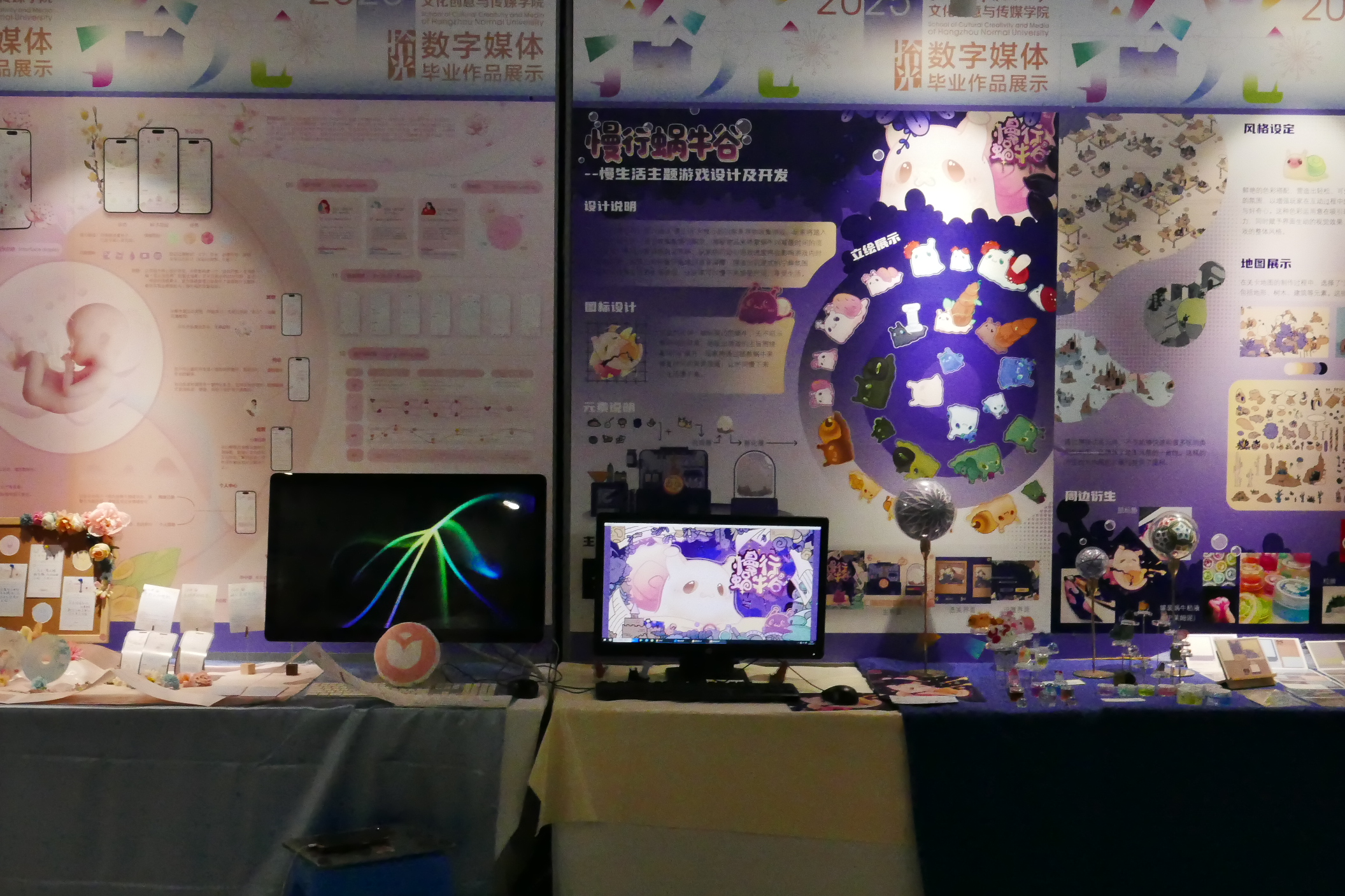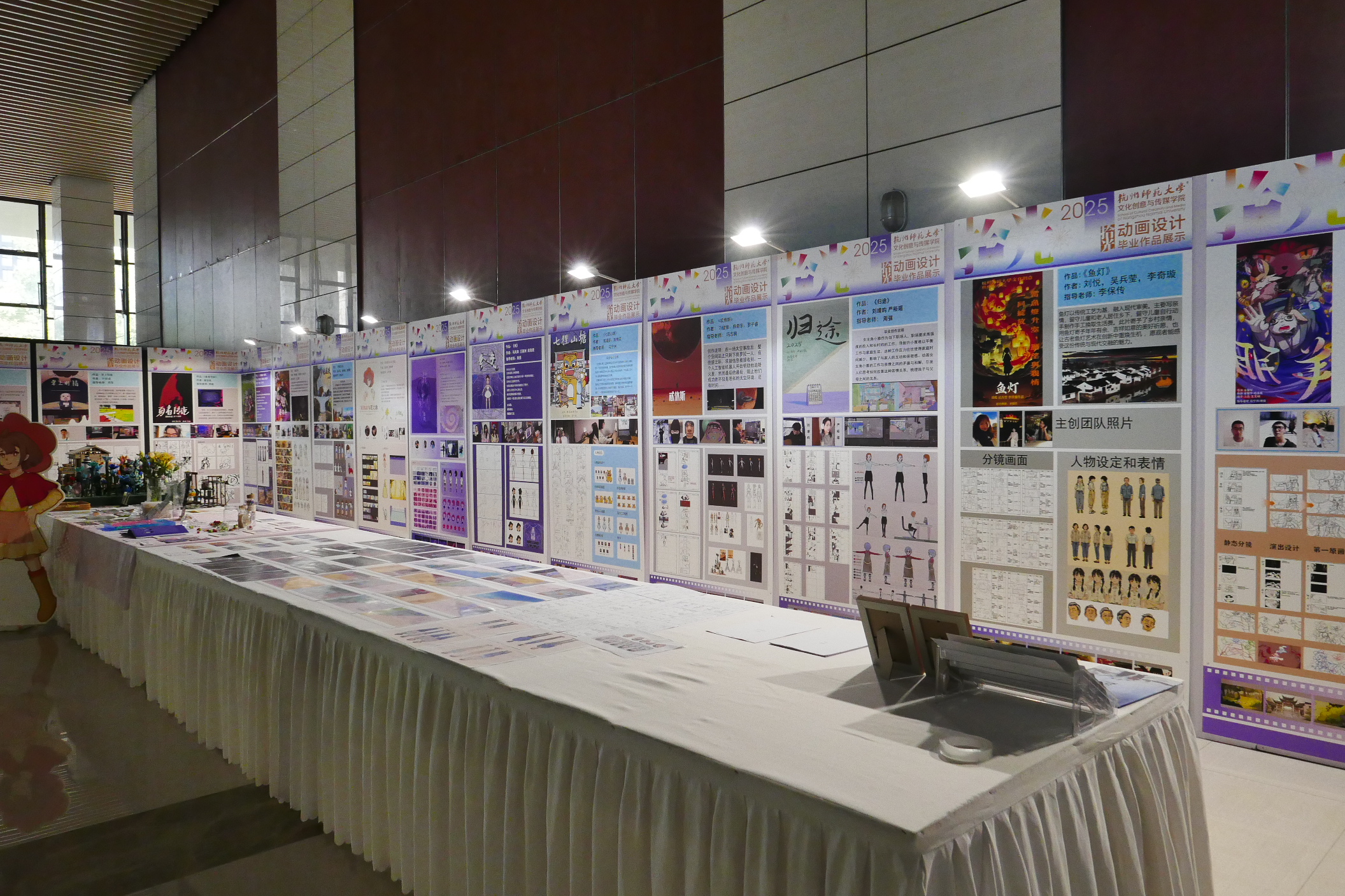 本次展览,汇聚了动画设计、插漫画设计、数字媒体设计、影视艺术等专业方向本科生的148件毕业创作,每一件作品都蕴含着文传学子对社会万象的独特洞察,文化内涵的深度挖掘,艺术形式的创新探索以及新媒体技术的娴熟运用。仿若熠熠生辉的星辰矩阵,既承载着传统美学的基因密码,又闪耀着数字文明视域下的未来想象,人文精神、审美素养和时代内涵的深度共鸣,共同编织出这个光影斑驳、炳焕生辉的艺术星海。