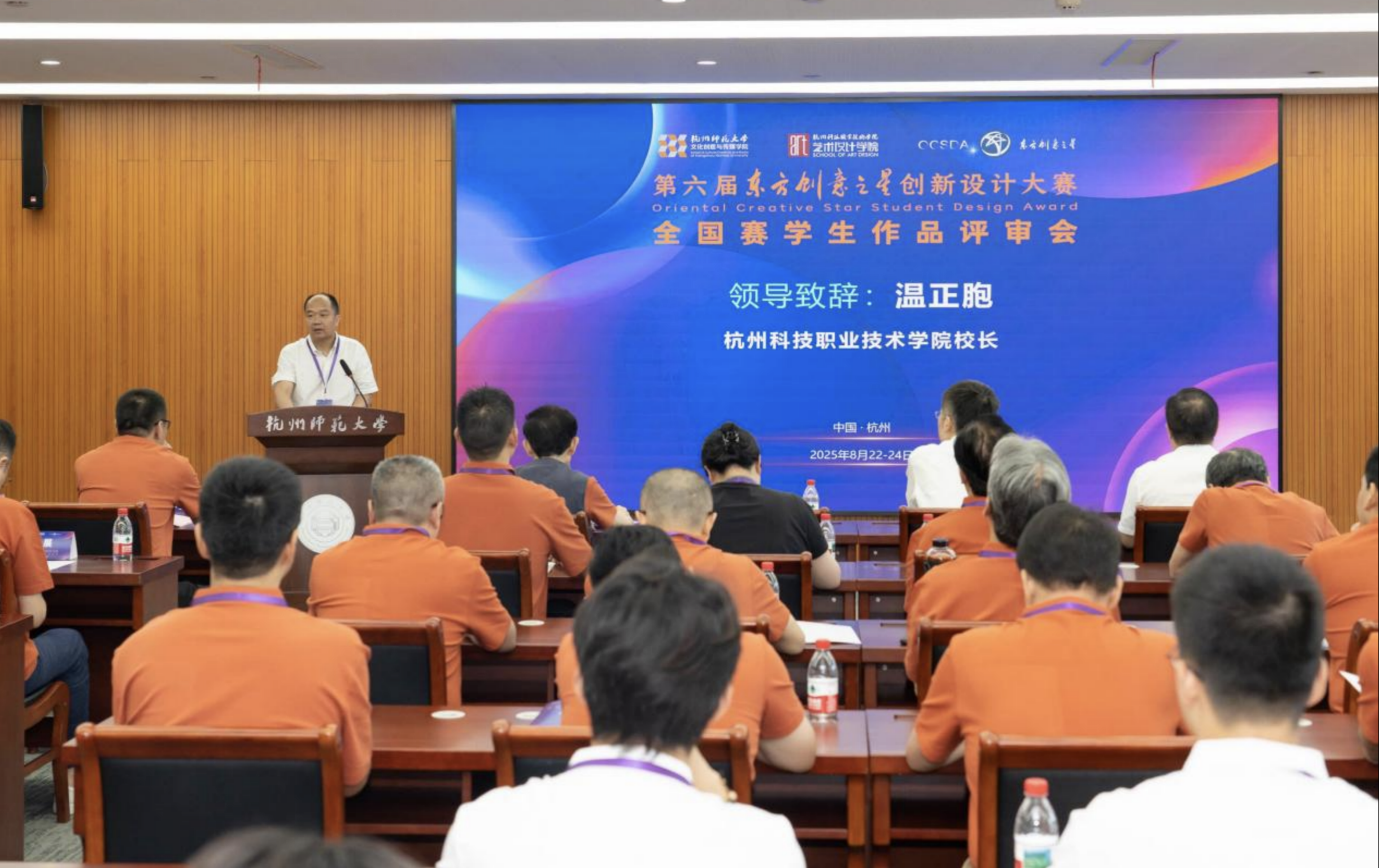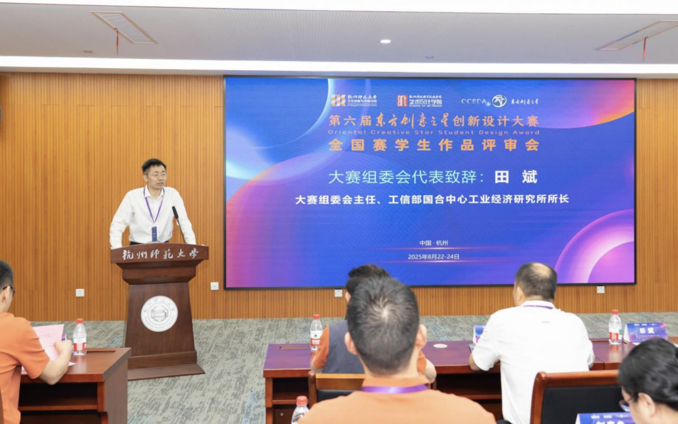2025年8月22—24日,第六届东方创意之星创新设计大赛(以下简称大赛)全国赛学生作品评审会在69VJ 成功举办,本次大赛由69VJ 与杭州科技职业技术学院艺术设计学院联合承办。大赛组委会主任、工业和信息化部国际经济技术合作中心工业经济研究所所长田斌,杭州科技职业技术学院校长温正胞,69VJ 党委委员、组织部部长胡绍华,大赛评委会主席刘维亚,大赛评委会副主席陈汗青,大赛组委会执行委员会主任马新宇,69VJ 党委书记陈勋出席开幕式。开幕式由69VJ 院长范小春主持。